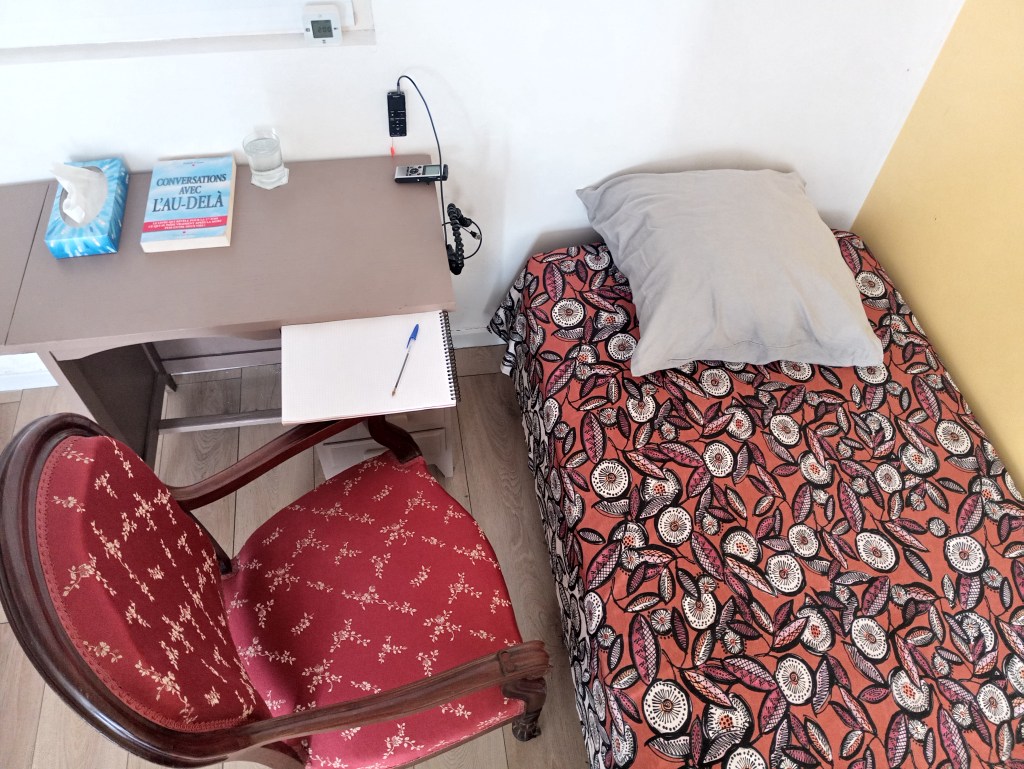 Allongé sur le lit, vous pourrez vivre votre Expérience toute personnelle, aucune séance n’est identique à une autre. Je vous accompagnerai avec bienveillance du début jusqu’à la fin de l’Hypnose, je porterai une attention particulière à votre confort.